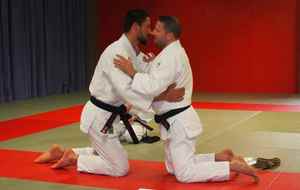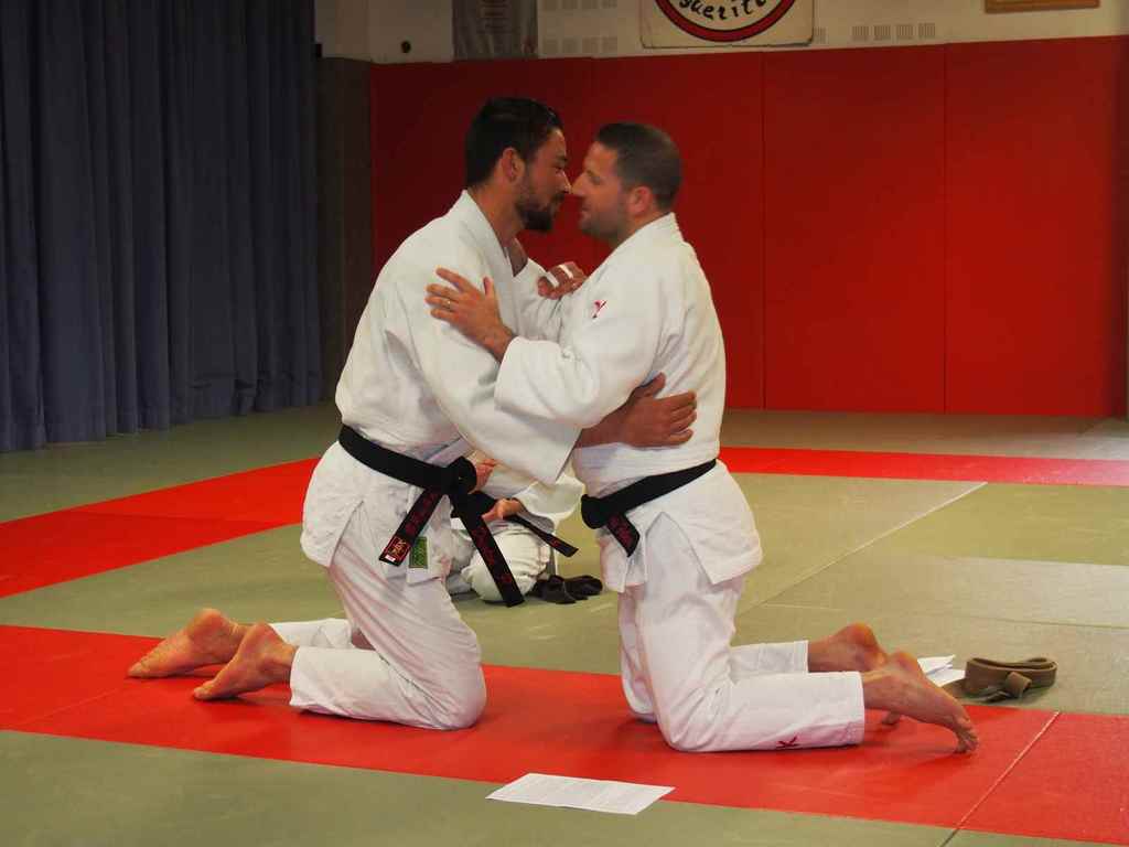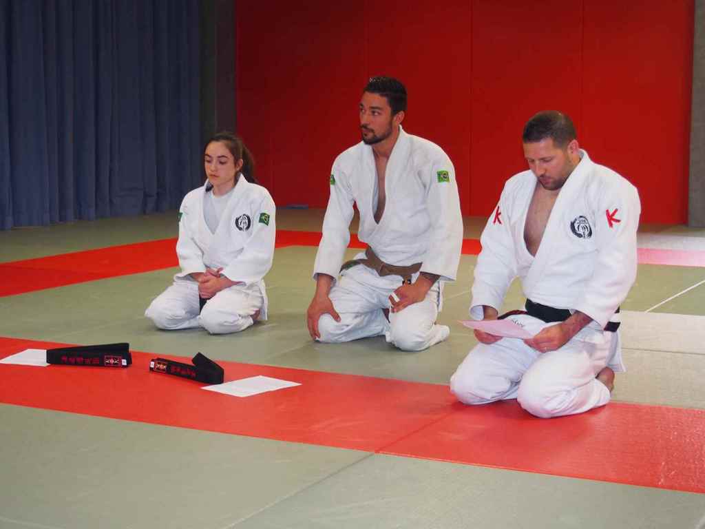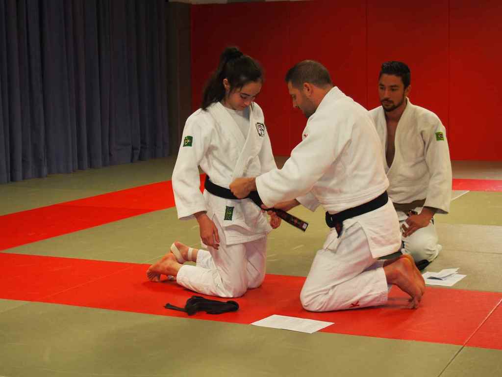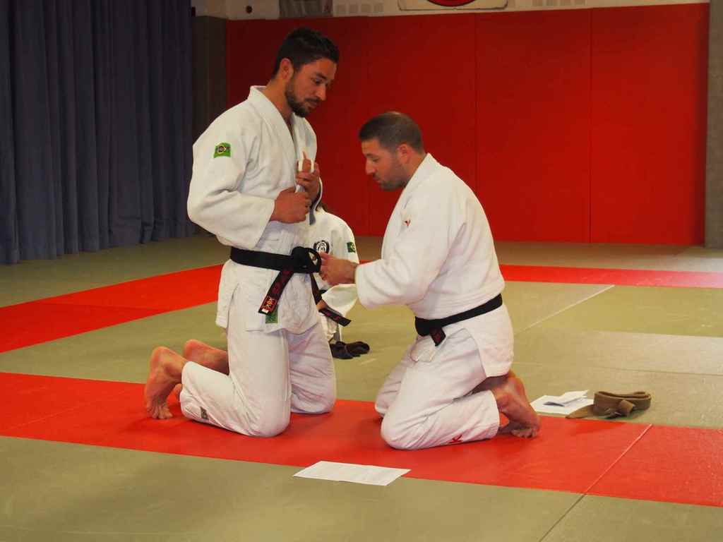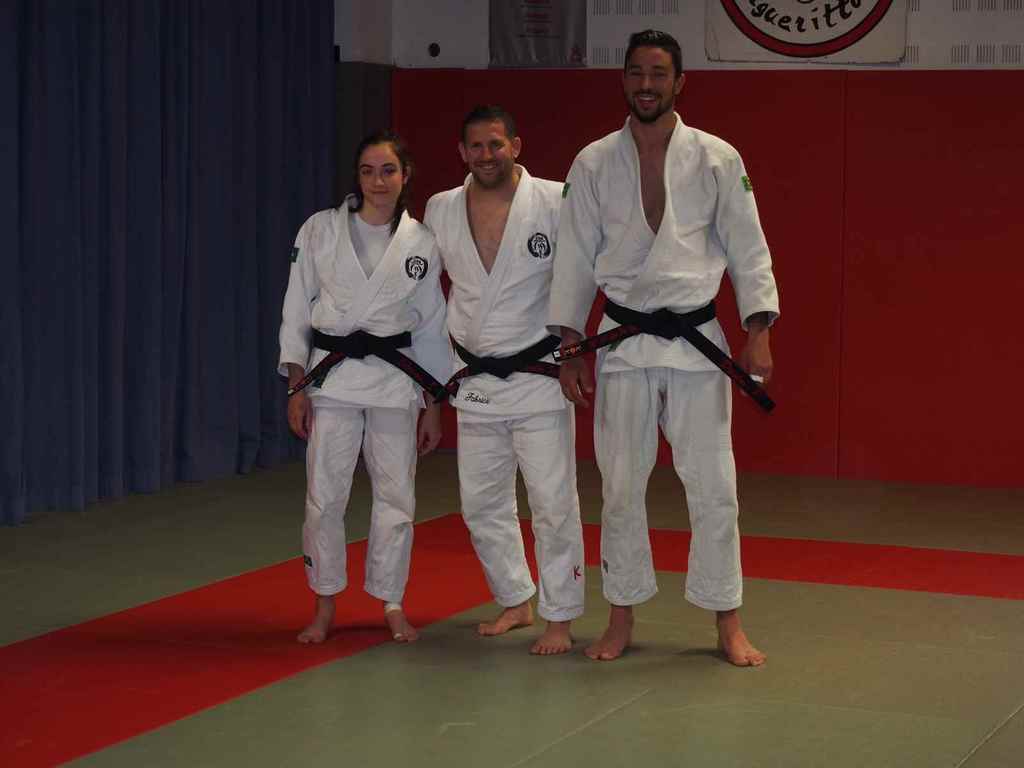 Deux judoka méritant qui, avec persévérence, rejoignent les 15 ceintures noires du judo-club.